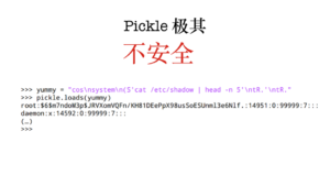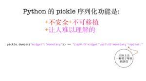 警告:pickle模块在面对错误或者恶意构建的数据时是不安全的。永远不要解析不受信任的或者不可靠的数据